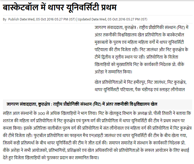 बास्केटबॉल में थापर यूनिवर्सिटी प्रथम