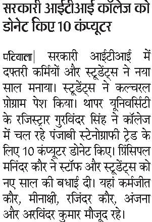 सरकारी आईटीआई कॉलेज को डोनेट किये 10 कंप्यूटर
