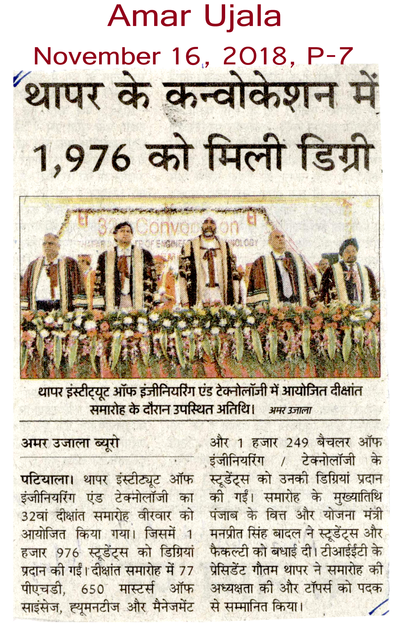 थापर के कन्वोकेशन में 1,976 को मिली डिग्री