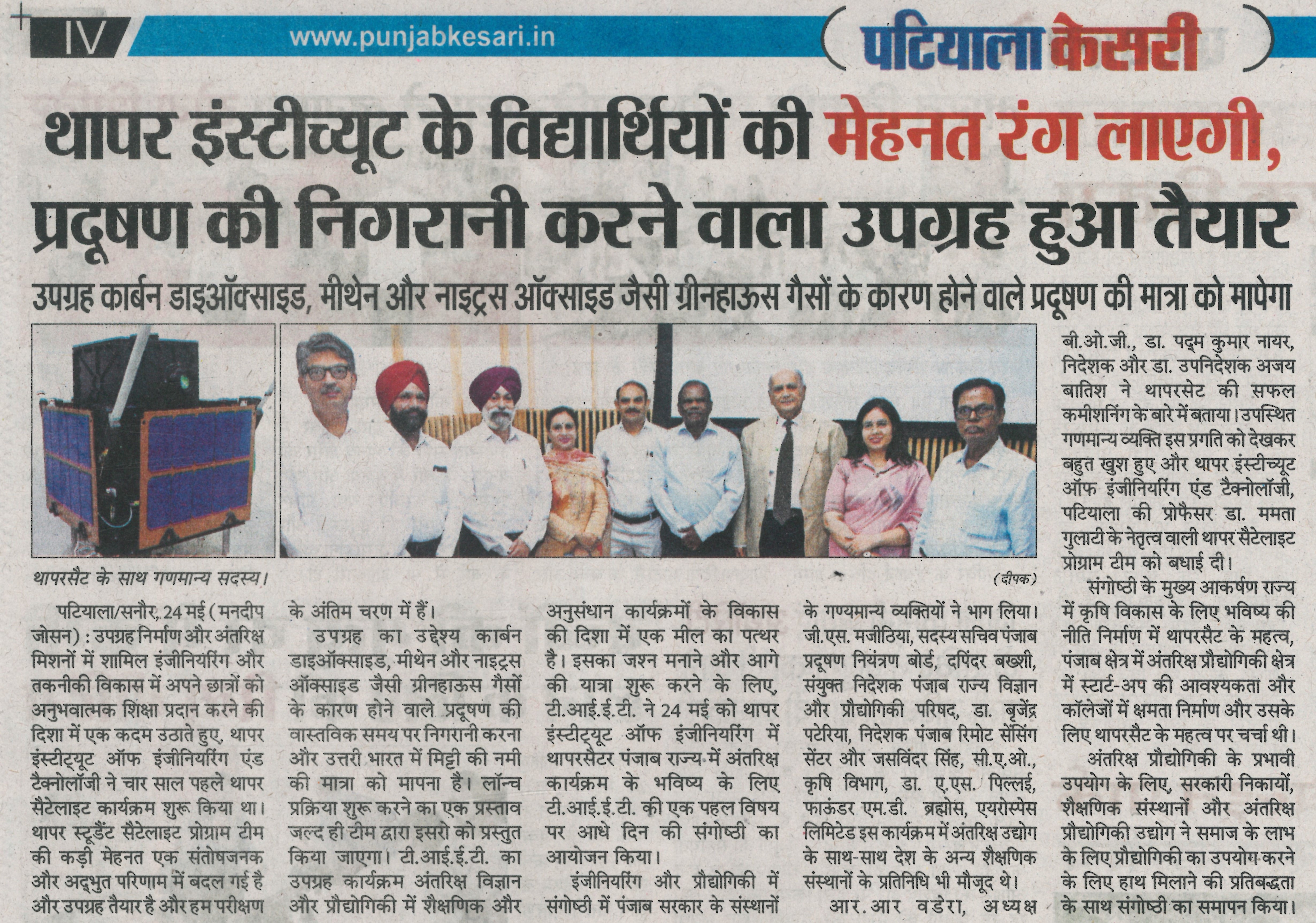 थापर इंस्टिट्यूट के विधार्थियों के मेहतन रंग लाएगी, प्रदूषण की निगरानी करने वाला उपग्रह हुआ तैयार
