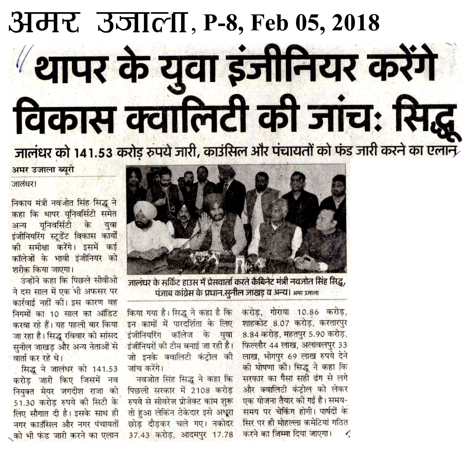 थापर के युवा इंजीनियर करेंगे विकास क़्वालिटी की जाँच: सिध्धू