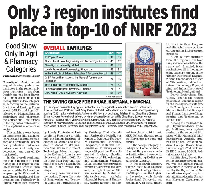 Only 3 region institutes find place in top-10 of NIRF 2023